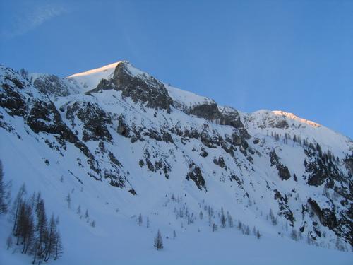 | Aber schließlich ist es soweit, und die Sonne beleuchtet die Bergspitzen ... |