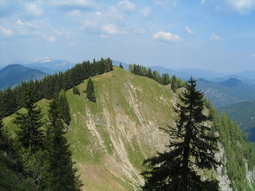 | Beim Abstieg haben wir auch noch dem grünen, weglosen Hügel des Kleinen Maiereck einen Besuch abgestattet. In wenigen Minuten gelangt man von der Melkluke unschwierig hinauf |