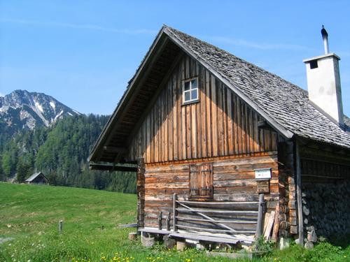 ... und neben einer der Hütten (das Schild "Hüttenrundweg" bezieht sich übrigens nicht nur auf die 2 Hütten der Seisenalm) ...