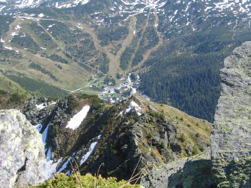 | ... und in die entgegengesetzte Himmelsrichtung hinunter zur Planneralm. Das Franzosenkreuz steht unten auf dem Grashügel ... |