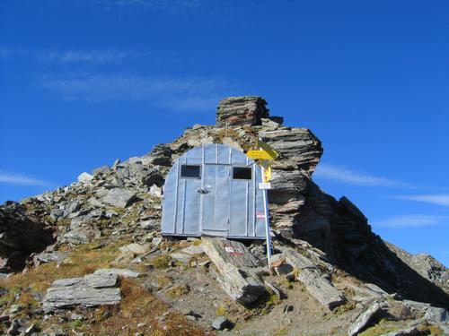 Direkt in der Scharte steht eine Biwakschachtel ...