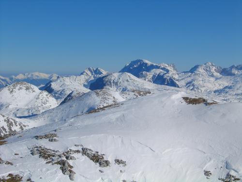 Blick ins östliche Tote Gebirge in die Gegend um Gr. Priel und Spitzmauer.