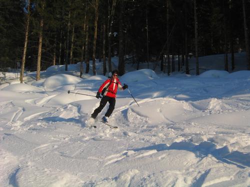 | Wie ein junges Reh, wie eine grazile Gazelle, wie eine Elfe, ja beinahe engelsgleich schwebt Sonja in eleganten Schwüngen um die pulverschneebedeckten Hügel. |