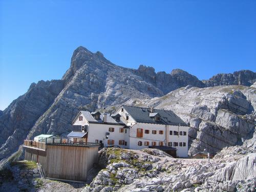 | Aber schließlich ist die Hütte doch erreicht, und wir beschließen, vor dem Genuß von Speis und Trank noch dem Bereithorn (links hinten) einen Besuch abzustatten ... |