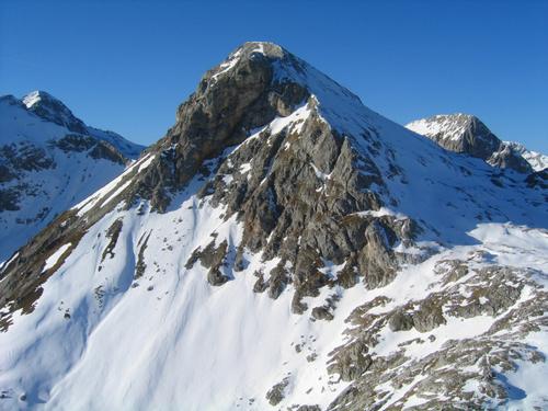 Bei der Abfahrt über die Felsen vom Nordostrücken des Eselstein (rechts im Schatten) am 15.04.2005 habe ich meine bis dahin unversehrten Tourenschi in "Stoaschi" verwandelt.
