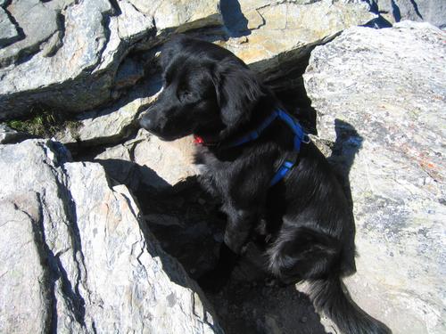 Viele Wanderer und auch ein Hund verweilen beim Gipfelkreuz, und nachdem es uns allmählich etwas zu eng und laut wird, steigen wir hinab zur Akarscharte ... |
