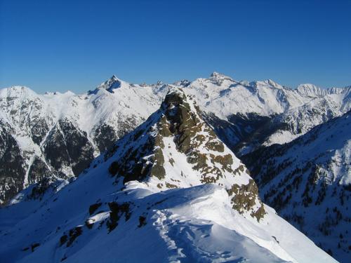 Gipfelblick nach Norden über Viermandlspitze in die Bergwelt um Höchstein und Hochwildstelle