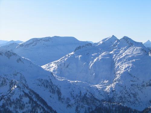 Blick zur Lungauer (langgezogener Rücken - links) und Steirischen (rechts) Kalkspitze. Rechts im Vordergrund die Kampspitze.