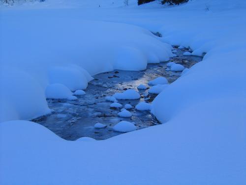 Unter der Eisschicht gurgelte ein dünnes Bächlein talwärts