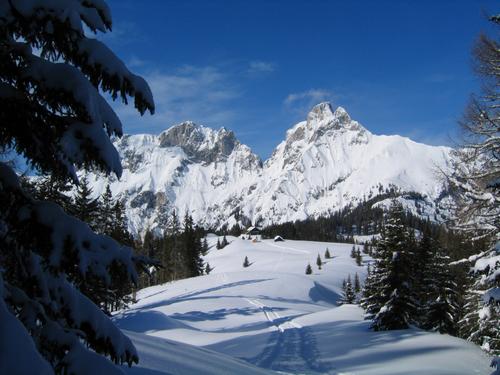 Beim Wiederabstieg zur Treffneralm und Mödlinger Hütte. Der oberste, von heftigen Winden umwehte Streckenteil liegt hinter mir.