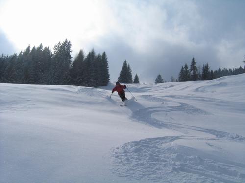 Das Wetter war heute zwar nicht das beste. Der staubende, lockere Neuschnee war aber Entschädigung mehr als genug.