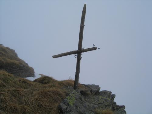 Beim Abstieg glaube ich, daß der "Hügel" weiter südlich doch noch höher ist, und das aus Zaunresten gezimmerte "Gipfelkreuz" läßt die Vermutung aufkommen, daß ich jetzt am richtigen Gipfel bin ...