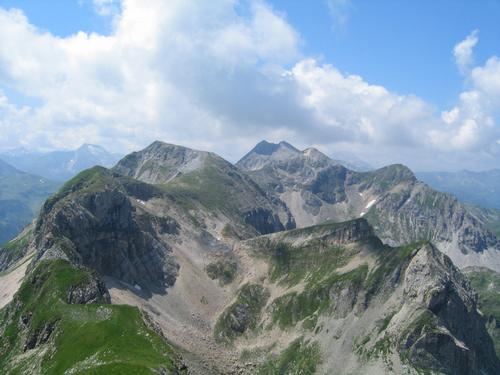 Von der Zehnerkarspitze könnte man auch weiter westwärts wandern, um über die Glöcknerin (links) und die Hintere Großwandspitze zum Großen Pleißlingkeil zu gelangen ...