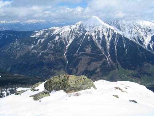 Das in den Karte verzeichnete Gipfelkreuz am Zinken konnten wir heute leider nirgends entdecken. So mußten wir mit diesem Gipfelstein mit rotem Markierungspunkt Vorlieb nehmen.