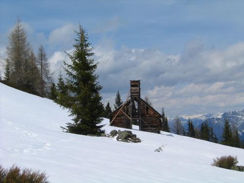 Bei der Madelsgrubenalm. Etliche Hochsitze säumen das Almgebiet.