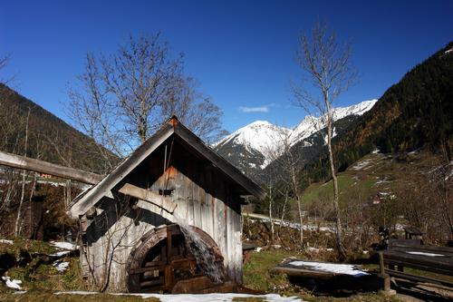 Von der Großsölkstraße folgt man der Beschilderung zur Trogermühle. Im Hintergrund das schneebedeckte Gumpeneck.