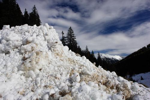 Ca. 3 bis 4 Meter ist der Lawinenkegel im Bereich einer Forststraße.