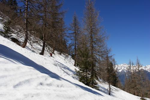 An einem weniger steilen Hangteil wagen wir schließlich den Abstieg ...