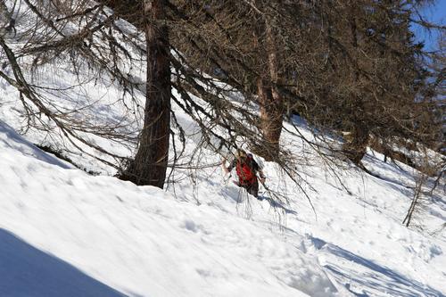 ... oder besser das Abrutschen, mitunter bis zum Bauch im Sulzschnee versinkend.