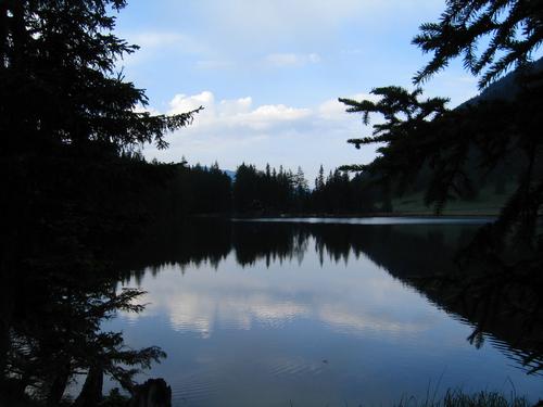 Gab es zu Hause noch wolkenlosen Himmel, so wurden wir hier am Etrachsee von leichtem Nieselregen empfangen.