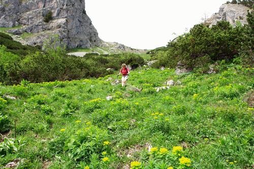 ... weiter unten ebener auslaufend. Dafür werden hier die Latschen immer dichter.