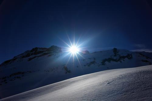 Sonne über dem Hangofen, der nach Norden steil abfällt.