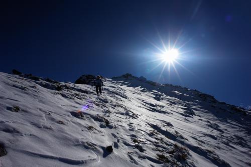 Abwärts laufen im gefrorenen Schnee. Da kommt fast schon Winterstimmung auf.