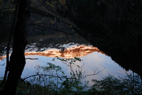 Schöne Spiegelungen am Schwarzensee, in dessen Nähe wir dem imposanten Röhren eines nicht weit entfernten brunftigen Hirsches lauschten.