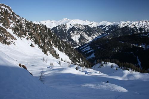 Blick vom Schidepot (welches nicht zwingendermaßen erforderlich ist) zurück über das Aufstiegsgelände.