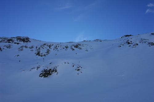 Die ausgesetzte Querung erfordert sichere Schneeverhältnisse.