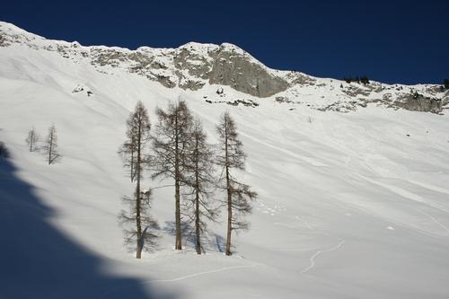 ... zu einigen kahlen Bäumen.