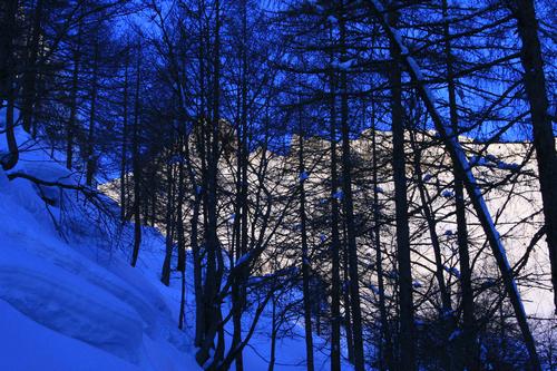 | Ganz schaffe ich es nicht, bei Sonnenaufgang bereits im Karl zu sein. Die Berge liegen bereits in der Sonne, als ich im stellenweise etwas steileren Wald vom Säbelboden hinüberquere. |