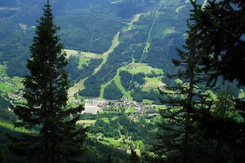 Tiefblick vom Schnablwipfel in den Ausgangsort nach Hinterstoder hinunter.