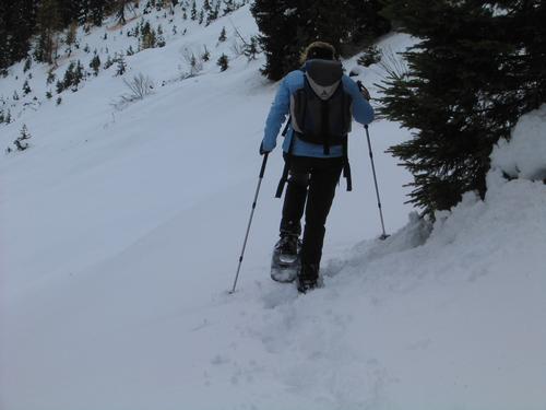 Die Fußspuren zweigten aber kurz danach nach links zu einer Hütte hinab. Wir stiegen dann direkt über die steilen Osthänge des Kochofen auf.