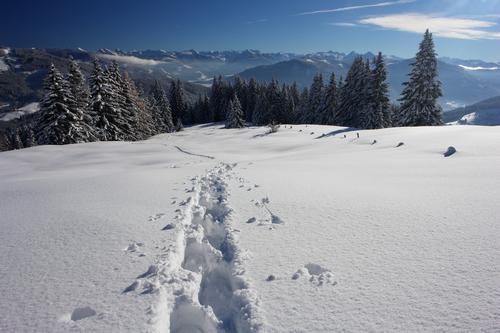 Die Spurarbeit - stellenweise sinke ich bis zu 50 cm ein - ermüdet mich zusehends.