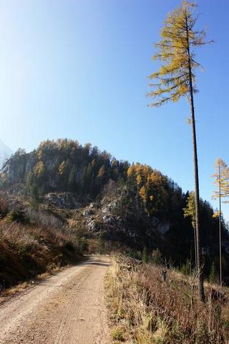 Bei der Abzweigung zum Gindlhorn (links der Bildmitte) vorbei - und weiter entlang der Forststraße ostwärts.