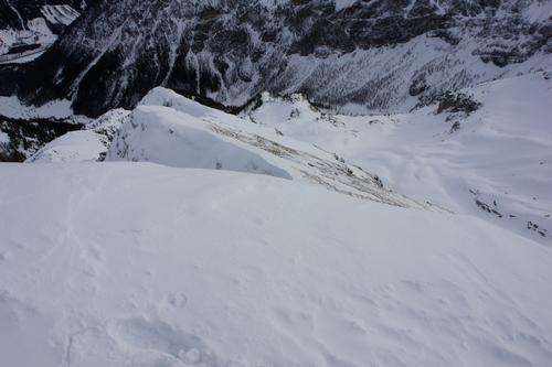 Die Lawinenknollen auf dem letzten Schlußhang sind direkt aus den Steilhängen im Gipfelbereich abgegangen.