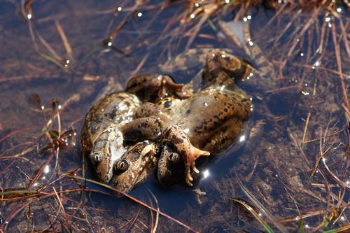 | Als wir kurz darauf diese 3 Frösche in zärtlicher Umarmung überraschten, fragten wir uns, welchen Geschlechts diese wohl seien. |