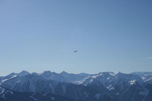 Die Flugzeuge fliegen heute wieder tief. Im Hintergrund die Schladminger Tauern.