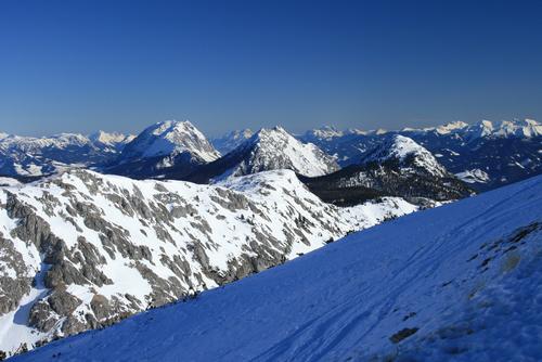Blick auf die heimatlichen Hausberge über Gröbming: Grimming, Kammspitz und Stoderzinken. Davor der fast unscheinbare Kufstein.
