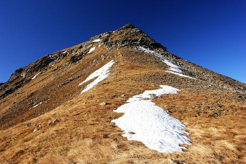 Anfänglich verläuft der Abstieg vom Mittereck völlig unkompliziert über einen mäßig steilen Wiesenrücken ...