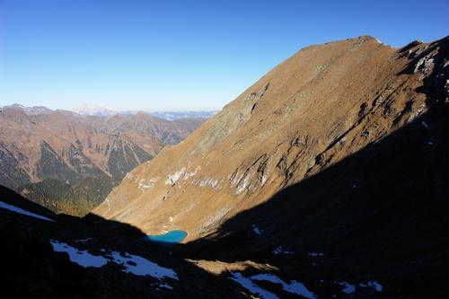 | Der herrlich türkis leuchtende Seekarlsee sollte ab nun eine Zeitlang ein überwältigender Blickfang bleiben. Ob als kleiner Fleck am Fuße des Seekarlspitz ... |