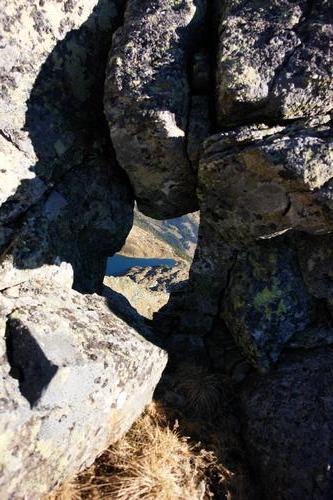 Eine Felsspalte gewährt Ausblicke auf den nächsten See.