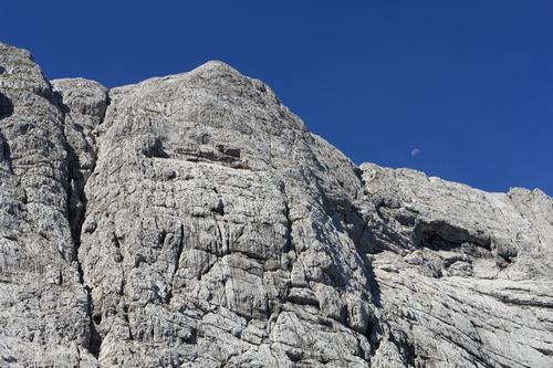 Nahe den markant aufragenden Felswänden des Hoßkogels vorbei - beobachtet vom Mond (rechts der Bildmitte).