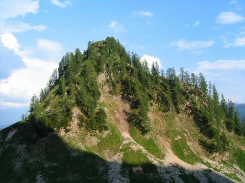 Der Gamsstein - noch in der Sonne. Gottseidank - das Wetter scheint stabil zu bleiben - das Donnergrollen im Osten dürfte mich nicht treffen. Ich will nicht daran denken, wie es mir hier bei Schlechtwetter gegangen wäre. Wo wohl gerade der Vater mit seinen 2 (jugendlichen) Kindern unterwegs ist ? Die kraxln auf den wildesten Felstürmen herum, und ich stelle mich hier so an. Etwas 30 bis 40 Höhenmeter noch. Nein, nicht schon wieder. Steil, ausgesetzt, unschaffbar. Was jetzt ? Wieder zurück. Dann kann ich gleich hier am Berg übernachten. Ich mit meiner Neugier - dem Drang, immer wieder unbekannten Wegen zu folgen. Meine berühmt-berüchtigten Abkürzungen. Ich bin froh, daß ich Ingrid nicht in dieses Gelände mitgeschleppt habe. Schön langsam werde ich müde - solange schon so angespannt. Ich bin eben nur ein Wanderer, kein Kletterer. Kurzes Zusammenreissen. Na geht doch. Nur nicht daran denken, was passieren würde, wenn mir hier ein Griff ausbrechen würde - so wie vor kurzem am Sturzhahn, wo ich mich aber recht rasch wieder fangen konnte. 10 Höhenmeter noch. Es beginnt zu tröpfeln. Da an der Latsche festhalten, dort die Finger in die schnell feuchter werdende Erde gebohrt. 5 Höhenmeter - jetzt gibt es keine Probleme mehr. Der Regen wird stärker - geschafft. Auch kein befürchtetes Schneefeld mit breiter Randkluft. Gehgelände - wie herrlich. Das Wandern ist des Yeti´s Lust. |