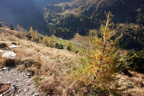 Tief unter mir der Talsschluß, an dessen linkem oberen Ende die Keinprechthütte liegt.