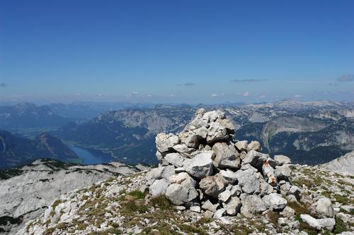 Beim Steinmandl am Plankermira-Hauptgipfel mit Aussicht zum Grundlsee.