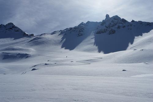Das markante, schmale Gipfelchen des Rührkübel ragt steil über dem übrigen Kammverlauf heraus.