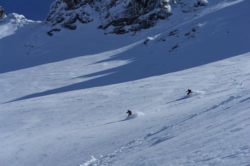 Das freudvolle Jauchzen der ersten Abfahrer - ob der herrlichen Pulververhältnisse - steigert die Vorfreude auf die Abfahrt.