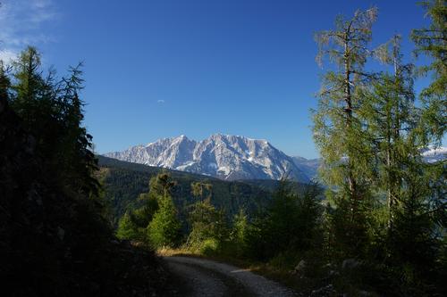 ... und weiter auf der Forststraße. Den Grimming vor Augen.